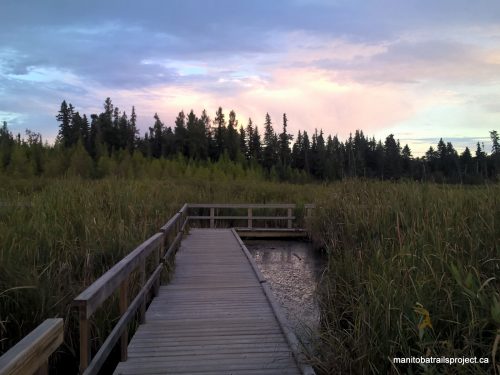 A floating boardwalk provides an immersive look into Marsh life in Riding Mountain National Park. Typical marsh plants, including Cattail, Willow and Bulrush grow up around the boardwalk, while secretive marsh birds can often be heard (but not easily seen). Tamarack and Black Spruce swamp surround the boundary of marsh, providing excellent views, especially around sunset.